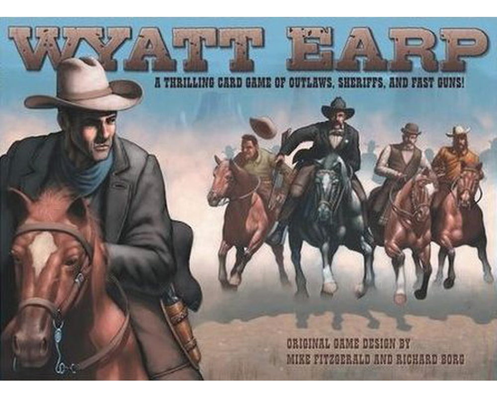 In Wyatt Earp, the players are bounty hunters who work cooperatively and competitively to try to capture the most notorious outlaws of the old west. They do this by collecting and playing sets of cards for the various outlaws. When a player plays a set, he both adds to the reward and improves his chances for collecting the reward for that outlaw. At the end of each hand, players collect money for the outlaws that they helped in capturing. After several hands, the player who has collected the most money in rewards is the winner!