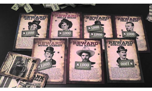 The aim of the game for each player to earn the most money from capturing famous outlaws. 2 to 4 players take up the roles of Sheriffs who are hot on the outlaws tails, trying to capture the outlaws with most rewards on their heads.