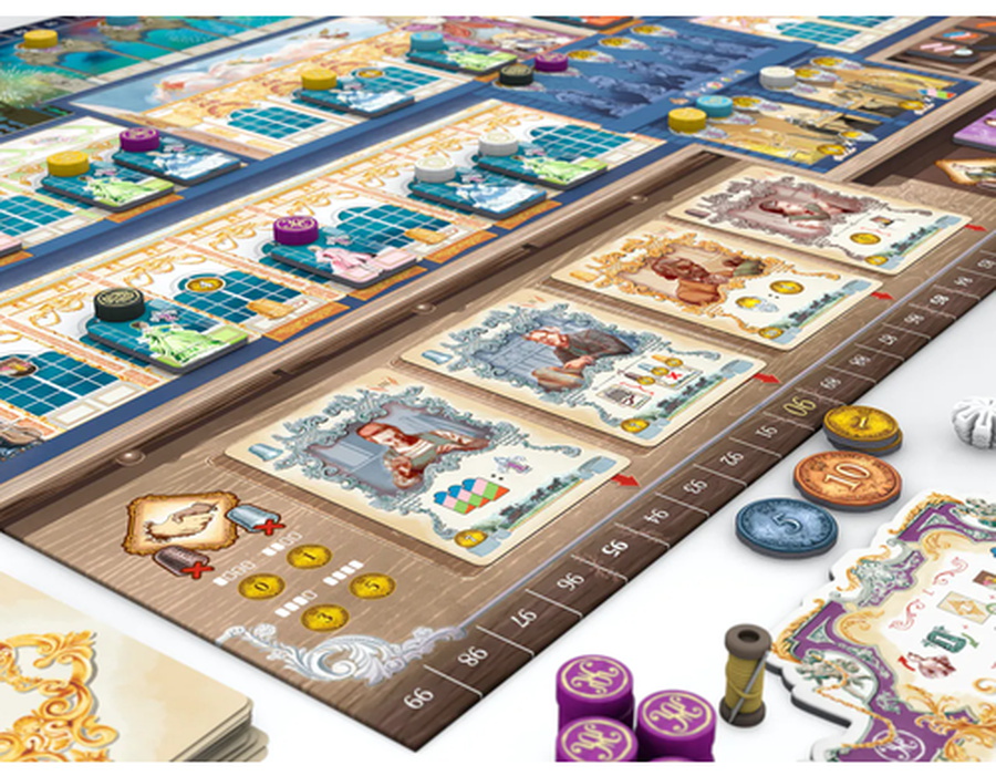 The Grand Ball ends after seven rounds with a huge fireworks display and final scoring. You will gain prestige points for the sumptuous gowns and frock coats you have rented out to guests at the ball, certain employee bonuses, and the festive decorations you have funded. Whoever has collected the most prestige at the end of the game wins.