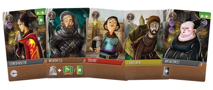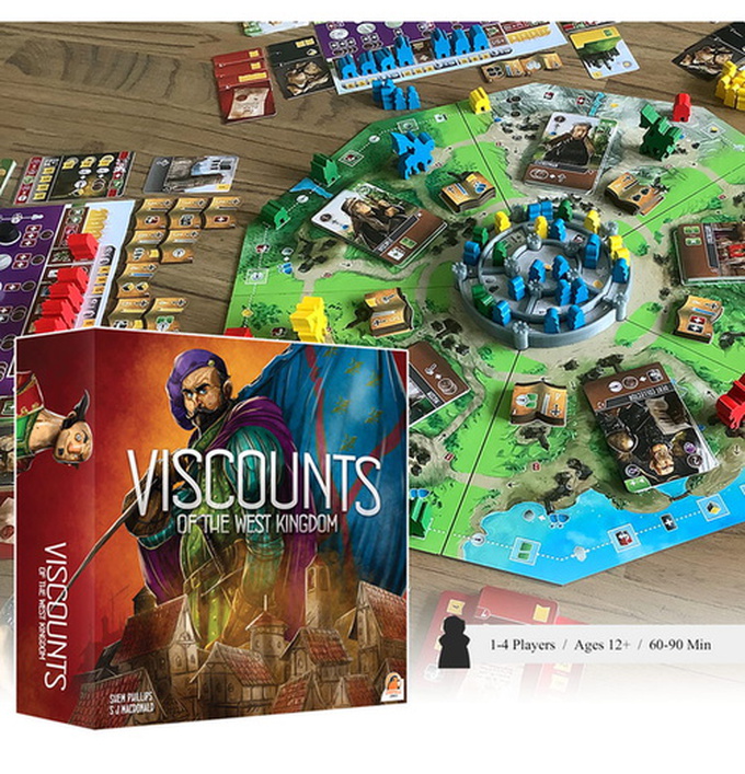 The aim of Viscounts of the West Kingdom is to be the player with the most victory points (VP) at game's end. Points are gained by constructing buildings, writing manuscripts, working in the castle and acquiring deeds for new land. Players begin with a handful of townsfolk, but should quickly seek out more suitable talents to advance their endeavours. Each turn they will be travelling around the kingdom, looking to increase their influence among the various areas of society. The game ends once the Kingdom reaches poverty or prosperity - or potentially both!