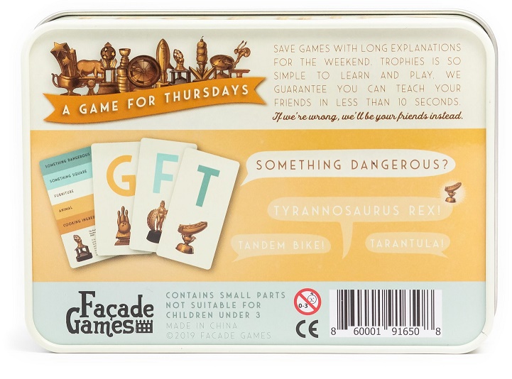 Trophies is the first in the "Games for Thursdays" line of party games by Facade Games.