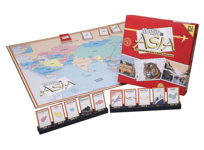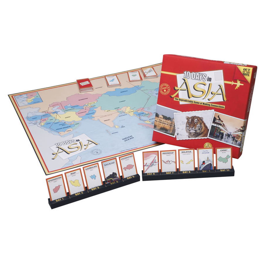You have 10 DAYS in ASIA - touring by train, airplane, ship, or on foot. Chart your course from start to finish using destination and transportation tiles. With a little luck and clever planning, you just might outmaneuver your fellow travelers. The first traveler to make connections for a ten day journey wins the game.