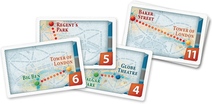 Ticket to Ride: London features the familiar gameplay from the Ticket to Ride game series — collect cards, claim routes, draw tickets — but on a scaled-down map of 1970s London that allows you to complete a game in no more than 15 minutes.