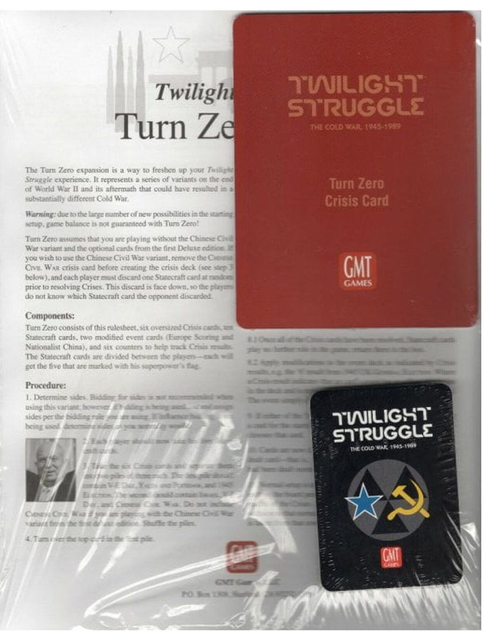 For those of you who'd like to expand your Twilight Struggle experience, we present the Twilight Struggle Turn Zero and Promo Packs expansions.