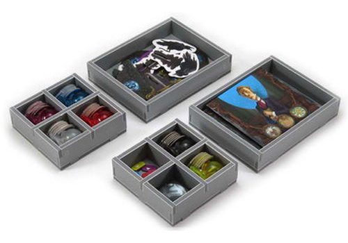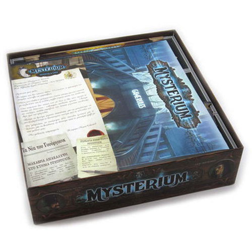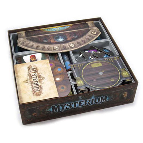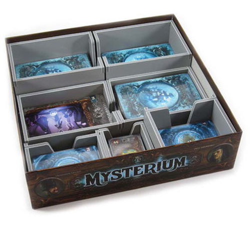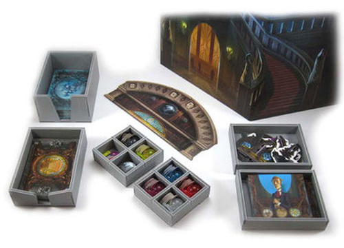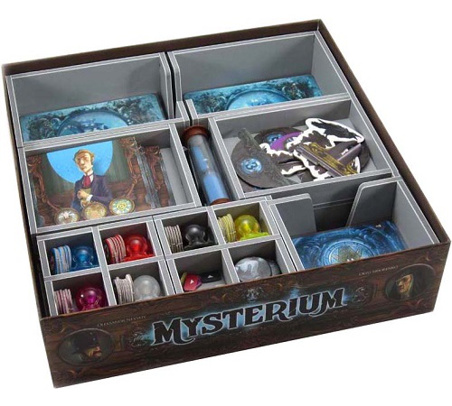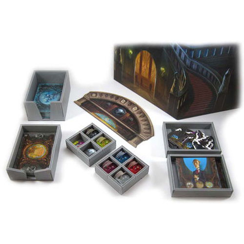 Insert compatible with Mysterium®, and the Hidden Signs® and Secrets & Lies® expansions. There is space also for any promo cards you might have. The design provides both efficient storage and improved game play. Many of the trays can be utilised during the game, and they greatly aid set-up and clear-away times. The rules and boards act as a lid on top of the trays.