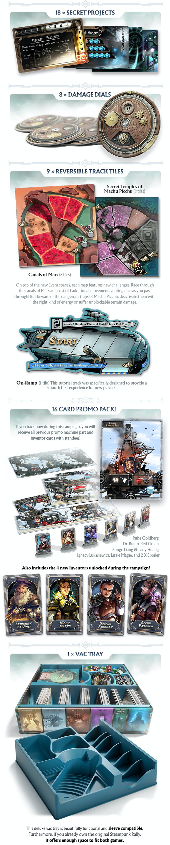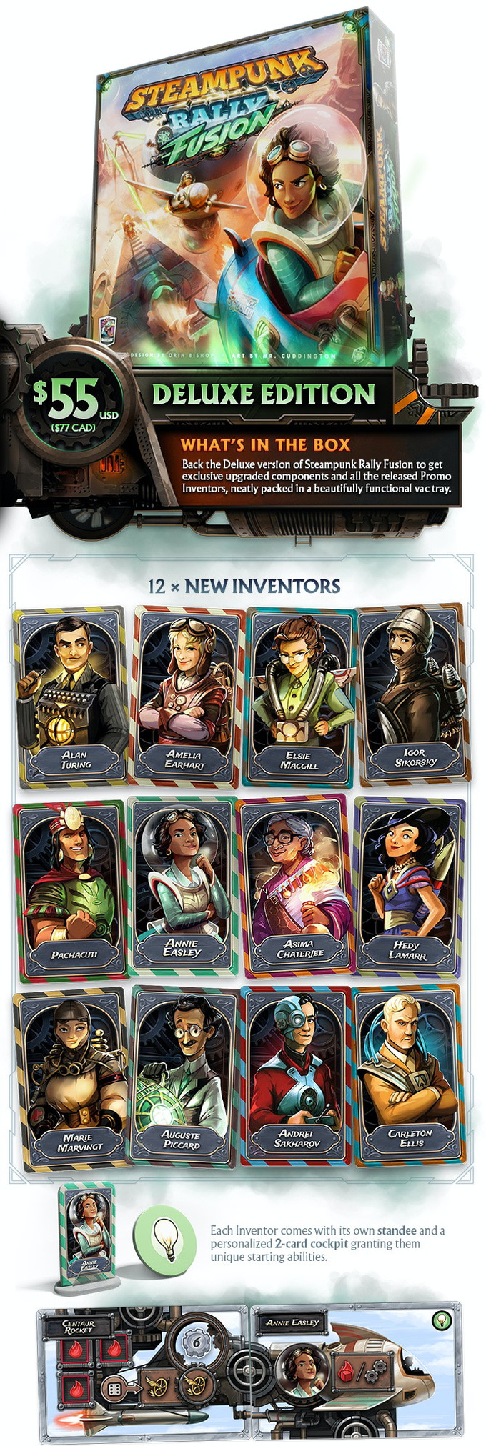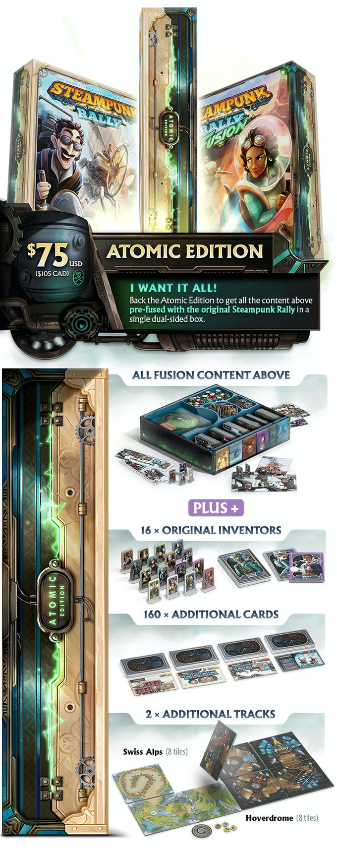Get two games with this Atomic Pledge - the original Steampunk Rally and the new Steampunk Rally Fusion.