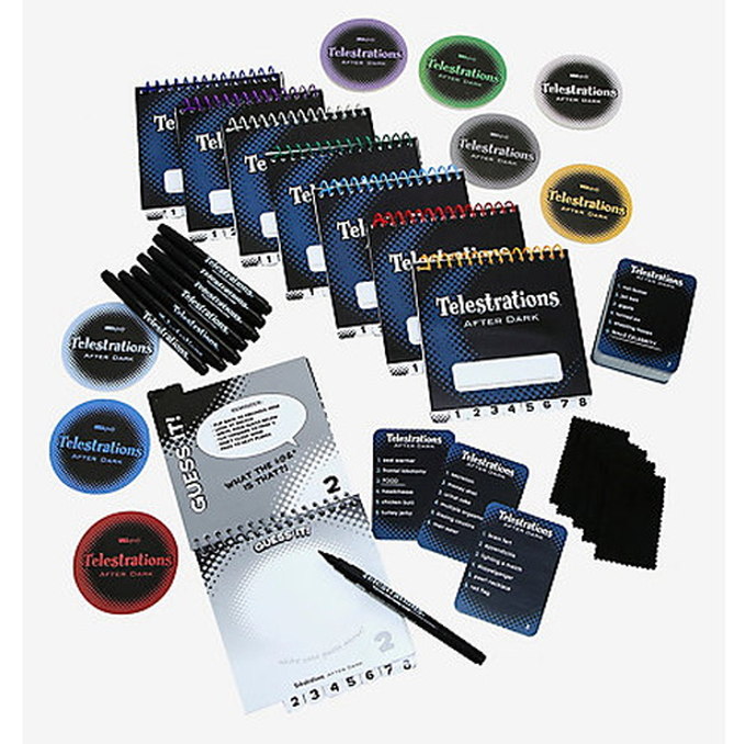 This is an adult version of the award winning Telestrations. Gameplay is the same, but the word content has changed to more adult fare. Some of the word cards now include stuff such as "Anaconda", "Jackhammer", "Doggie Style", and "Human Centipede".