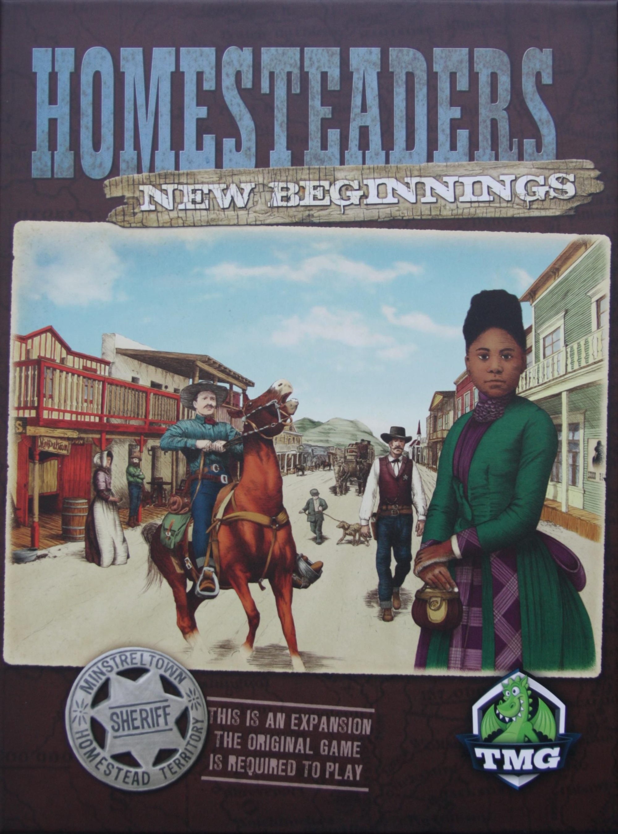 Homesteaders: New Beginnings includes all the components needed to add a fifth player to the game. In addition, the expansion adds more auction and building tiles to give more variance to each play session. It has 25 "jumbo size" resource components, and each of these counts as five resources of normal size. Lastly, the expansion includes an event deck, with every round of the game altered slightly by an event.