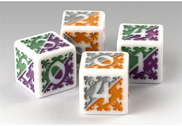 Inside you'll find a felt-lined box that serves as a dice tray. Players will also find 4 uniquely designed, dual-colored dice that introduces deeper strategy with another challenging decision - an option for another income die or to trade resources for different income.