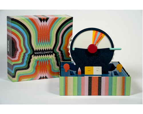 Wavelength is a social guessing game in which two teams compete to read each other's minds. Teams take turns rotating a dial to where they think a hidden bullseye is located on a spectrum. One of the players on your team — the Psychic — knows exactly where the bullseye is, and draws a card with a pair of binaries on it (such as: Job - Career, Rough - Smooth, Fantasy - Sci-Fi, Sad Song - Happy Song, etc). The Psychic must then provide a clue that is *conceptually* where the bullseye is located between those two binaries.