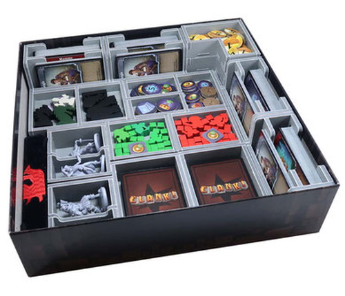 Insert compatible with Clank!®, and the Sunken Treasures®, The Mummy’s Curse®, Gold and Silk® and Acquisitions Incorporated: Upper Management Pack® expansions. The design provides both efficient storage and improved game play. Many of the trays can be utilised during the game, and they greatly aid set-up and clear-away times. The boards act as a lid on top of the trays.