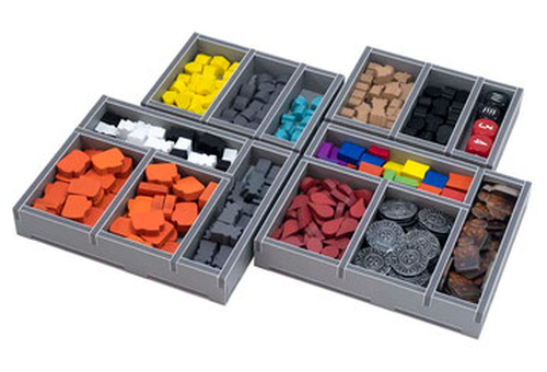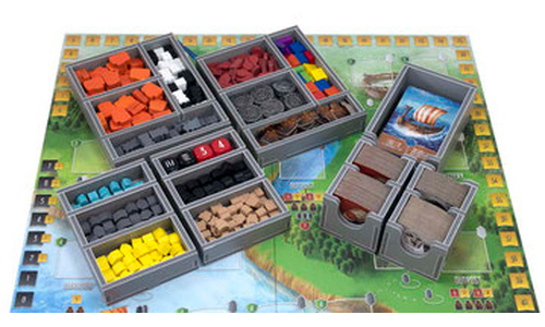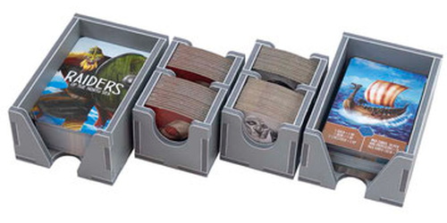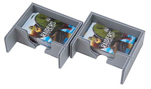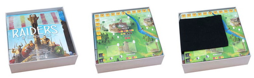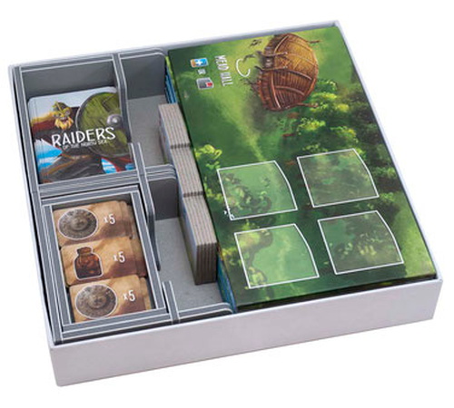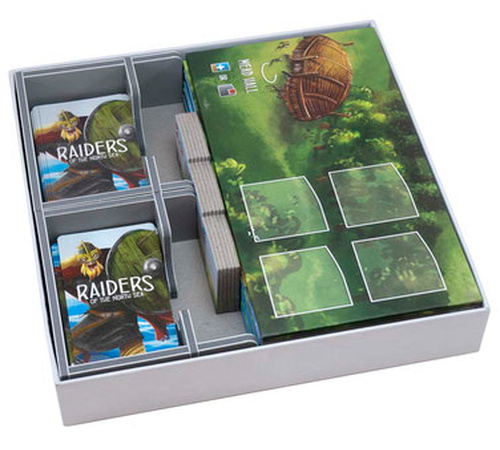 Insert compatible with Raiders of the North Sea®, including the Hall of Heroes® and Fields of Fame® expansions. The design provides both efficient storage and improved game play. Many of the trays can be utilised during the game, and they greatly aid set-up and clear-away times. The rules and boards act as a lid on top of the trays.