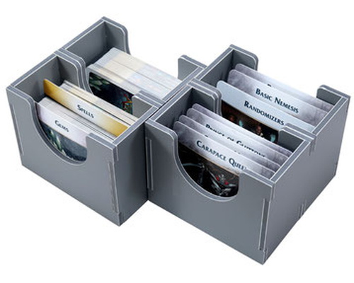 This is the last of the card trays, and is an unusual tray for Folded Space in that it is stored on it's side in the box. The tray does have a base, and has space for sleeved cards. The card dividers do not fit this tray, but in any event we recommend using it for the crystal cards only, making it clear what it contains.