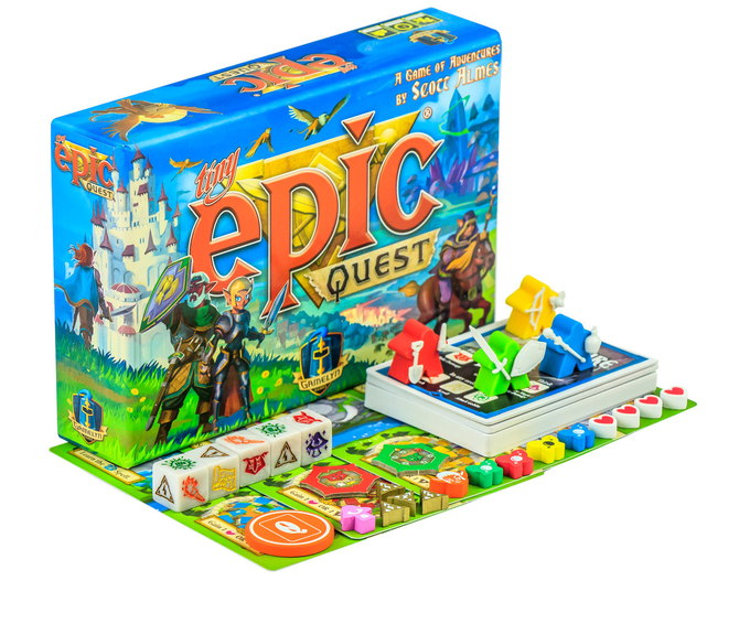 In Tiny Epic Quest, players embark on a sandbox adventure. Each player controls a band of three elf heroes questing to save the world and the sacred mushroom folk from the intruding goblins.