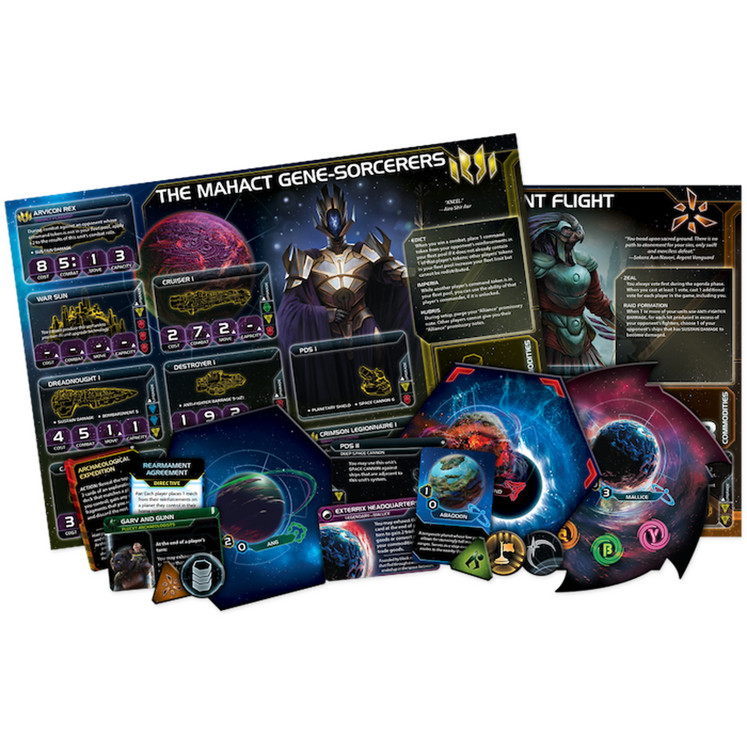 But that's only a fraction of what you'll find in this expansion! Adding even more flavor to your chosen species, a wealth of unique leader cards arrive to support every faction in the game, giving you powers to unlock during the game. Lumbering mechs stomp onto the battlefield as powerful new ground forces with unique special abilities for every faction. As you venture into the unknown regions of space, brand-new exploration decks seed new planets and the void of space with new discoveries, including fragments you can combine to create awe-inspiring relics. On top of this, Prophecy of Kings includes new action cards, agenda cards, objectives, technologies, promissory notes, legendary planets, and more.