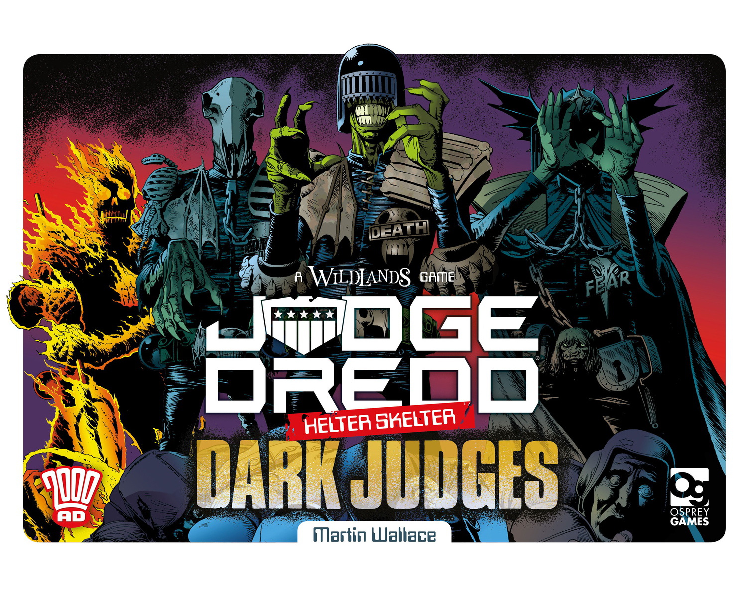 Judge Dredd: Helter Skelter – The Dark Judges is an expansion for the base game that introduces The Dark Judges, a new team that can be played against others in Judge Dredd: Helter Skelter or competed against on your own in a solitaire game.