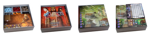 Insert compatible with Architects of the West Kingdom®, including the Age of Artisans® expansion and the Architects 2018 KS Promos pack. The design provides both efficient storage and improved game play. Many of the trays can be utilised during the game, and they greatly aid set-up and clear-away times. The rules and boards act as a lid on top of the trays.