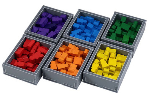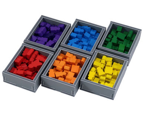 These are the trays for the player pieces, one for each of the six colours. Each tray has space for the player markers, and the worker and artisan meeples.
