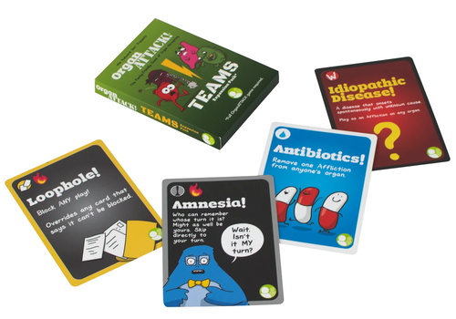 The TEAMS Expansion Pack comes with 27 new team play cards and 1 team play rules card. Must have the main OrganATTACK game to incorporate this pack.