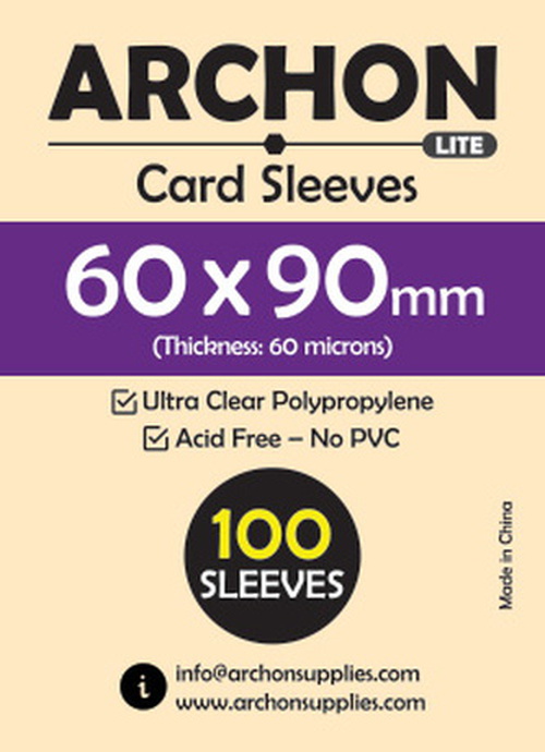 This is card protection sleeves from ARCHON LITE 60 X 90 MM. This pack contains 100 sleeves per pack and is designed to protect any card that is sized at 60 X 90 MM or smaller.