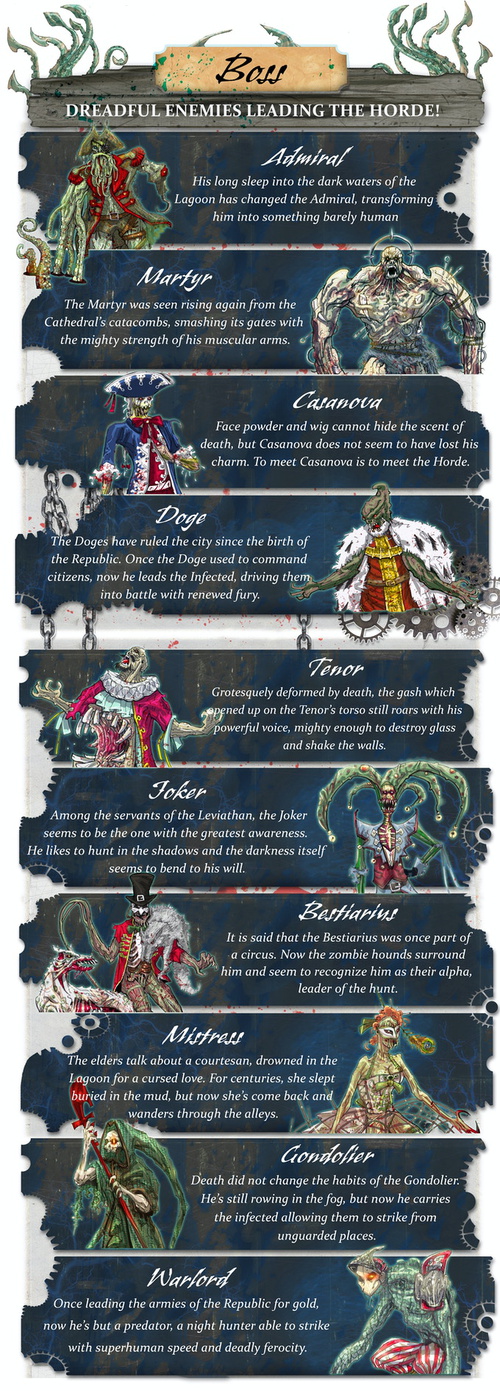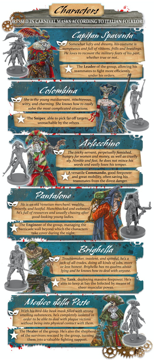 During the day, at first they move together as a group through the sinking city towards the finales locations, then each one spends the remaining hours in preparation for the night: building barricades, recovering from wounds, searching for items and survivors, or using his unique day ability. During the night, they face hordes of Infected and Boss: they have few actions to perform and their unique ability to survive behind the refuge barricades in a fast and furious firefight. Only by close cooperation they could have a chance to stand until the sunlight, when the horde retreats! If they’re attacked, they accumulate stress until becoming terrified! And if one gets too much stress.. that’s game over! Be ready to face the most stressful game ever!