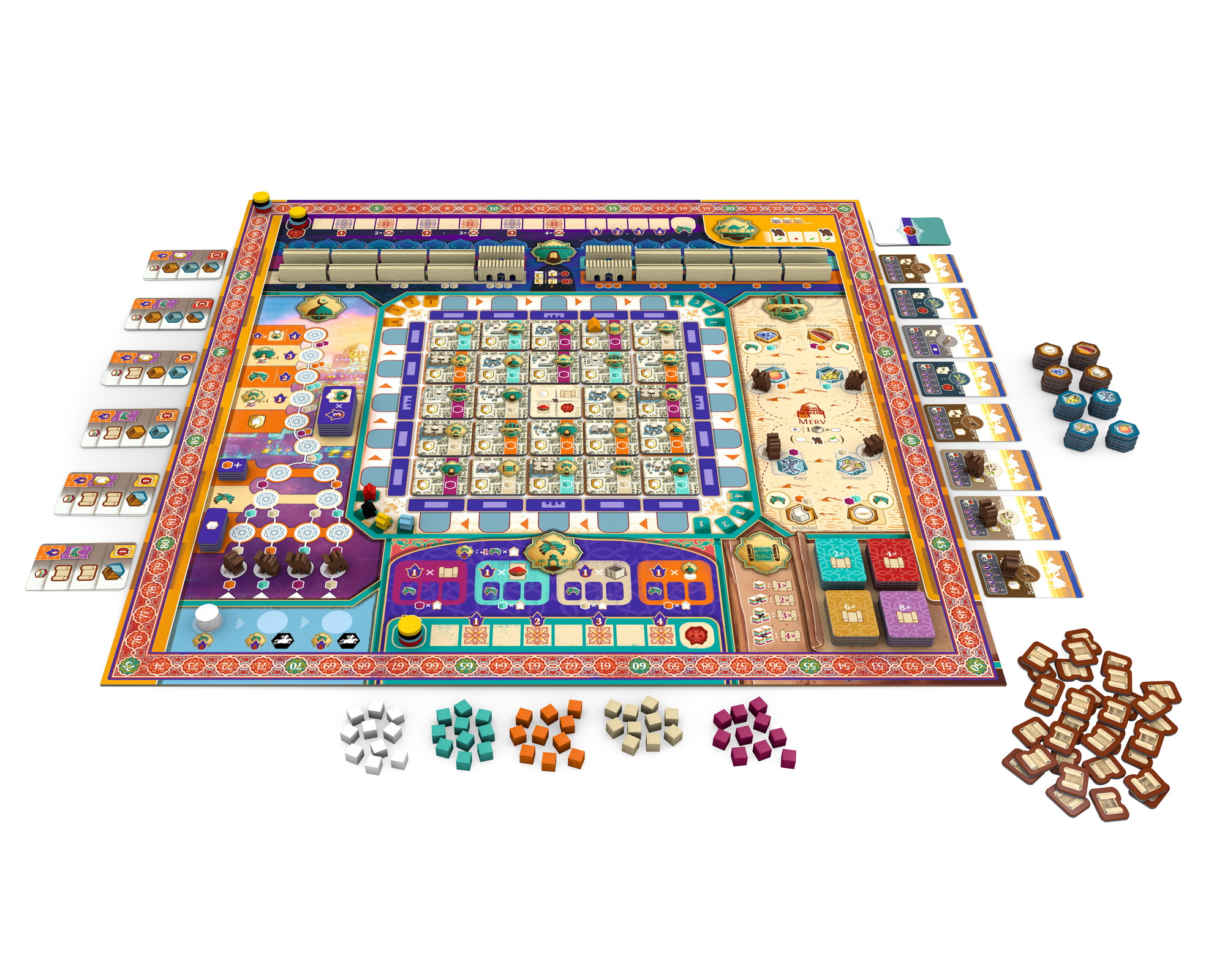 In Merv, players are vying to amass power and wealth in the prosperous heart of the Silk Road. Through careful court intrigue, timely donations to the grand mosque, and favorable trade deals, players attempt to redirect as much of that prosperity as possible into their own pockets.