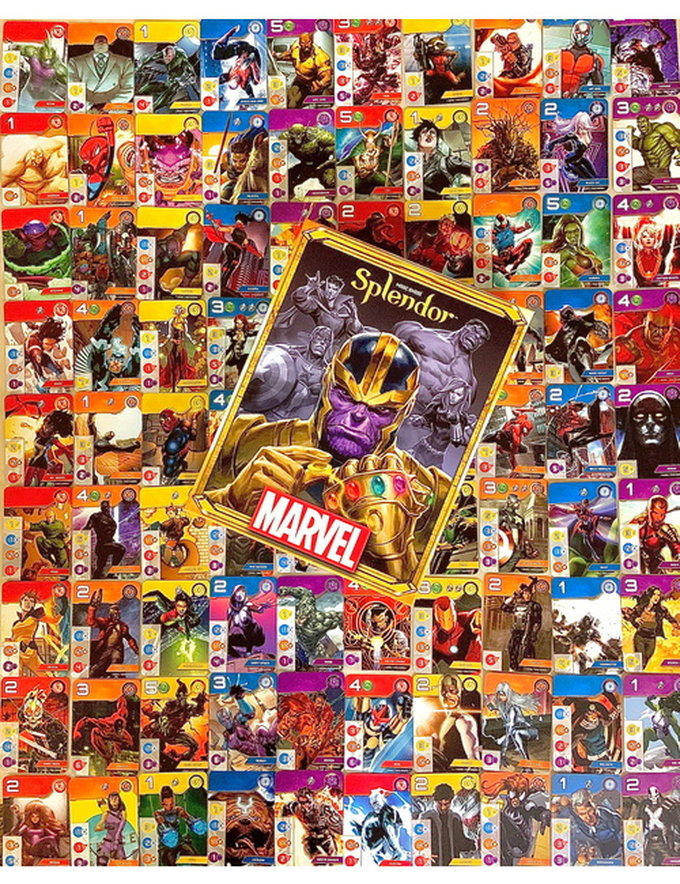 Even though Splendor Marvel uses Splendor’s core rules and high-quality materials, it has a different color structure, a new endgame trigger, and new victory conditions. You can also gain Infinity Points with the Avengers Assemble tile that can be passed from one player to another several times during the game!