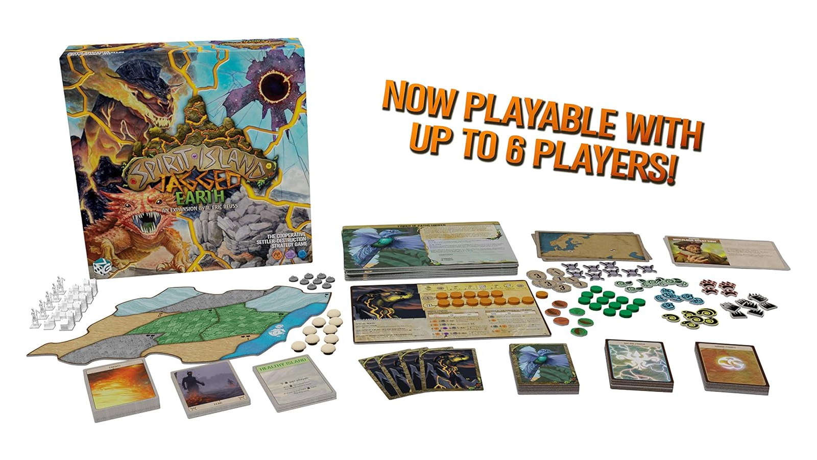 The Jagged Earth Expansion brings a fantastic variety of new play content to the fight for Spirit Island and allows you to expand the game from 4 players to 6.