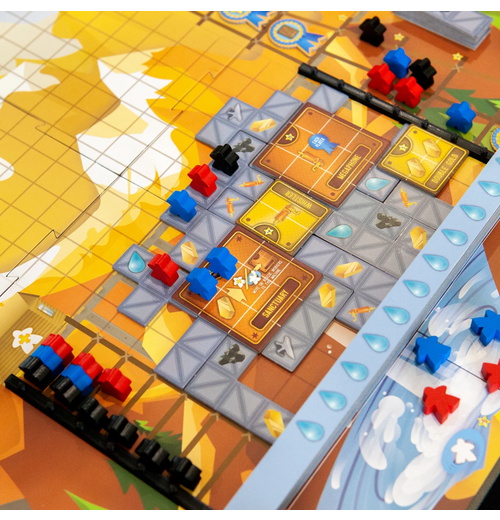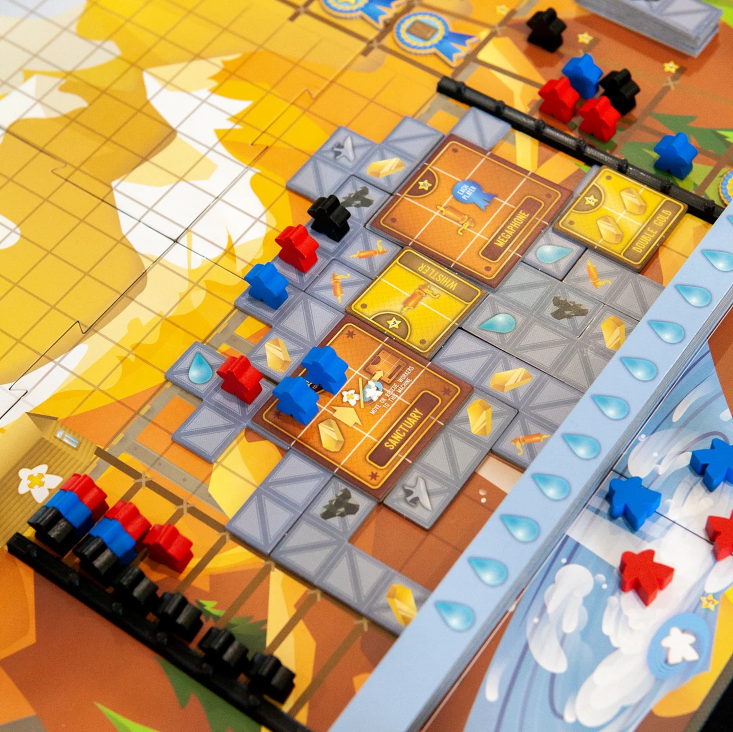 In Whistle Mountain, take your company's massive profits from all of that railroading and invest them in new technologies, deep in the Rocky Mountains where there is an abundance of resources. Your workers build crazy arrays of scaffolds and machines, upgrading your abilities and collecting resources. As you build with the help of your airship fleet, the mountain's melting snow causes the water below to rise higher and higher, putting workers in danger and increasing the tension on the dynamically-changing board.