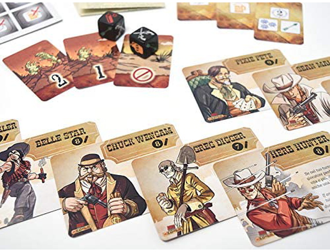 This expansion adds eight new enraged gunslingers and two new duel dice for fighting duels. If you lose a duel, you must draw a duel wound token. During your turn, each duel wound token you have cancels one identical symbol rolled on a die that you decided to keep.