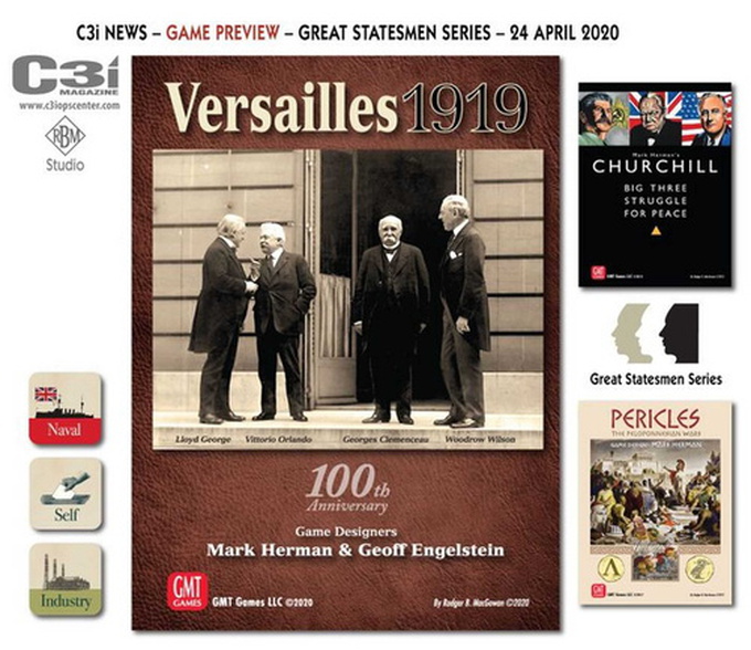 Versailles 1919, created by designers Mark Herman and Geoff Engelstein, allows you to experience this piece of history as one of the four leaders with a national agenda that must be satisfied. As one of the Big Four, you sit in a conference room gaining influence on the issues present in the room. Hovering in the waiting room sit other issues and personages who are waiting their turn to make their case to meet regional aspirations such as self-determination. Will you support Ho Chi Minh's attempt to free Vietnam from French colonialism? Help Prince Feisal establish a new nation in Mesopotamia or Chaim Weitzman create a Zionist state? Work with TE Lawrence to reduce unrest in the Middle East or with Ataturk in Anatolia?