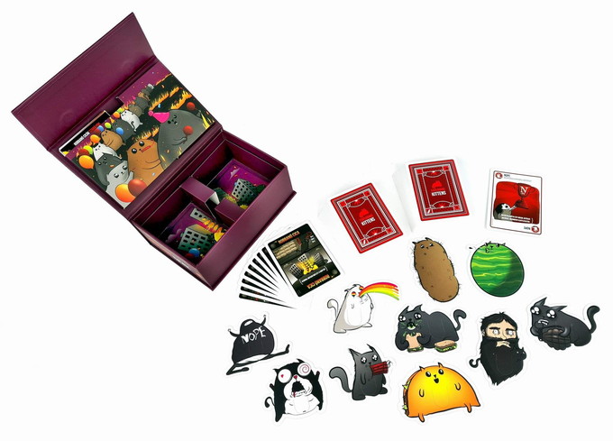 This stand-alone game includes cards from Exploding Kittens, Imploding Kittens and the Exploding Kittens App and allows 2-10 players