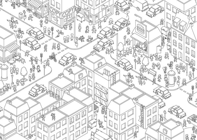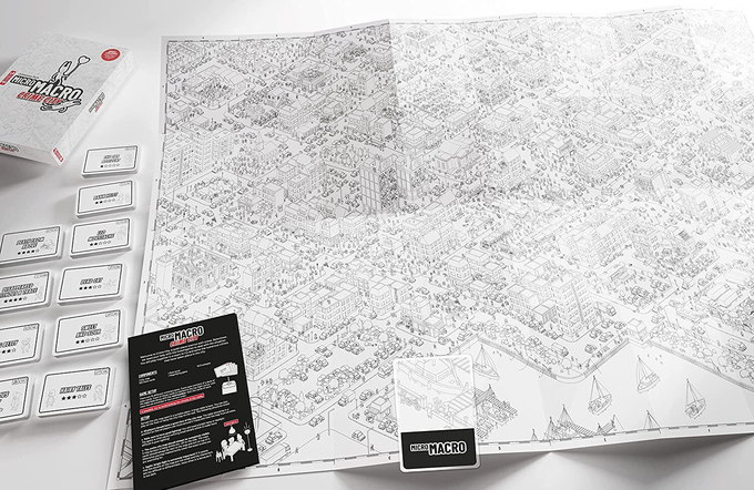 MicroMacro: Crime City includes 16 cases for you to solve. Each case includes a number of cards that ask you to find something on the map or uncover where someone has gone or otherwise reveal information relevant to a case. The city map serves as a map in time as well as space, so you'll typically find people in multiple locations throughout the streets and buildings, and you need to piece together what happened, whether by going through the case card by card or by reading only the starting card in the case and trying to figure out everything that happened for yourself. Will you be able to answer all questions about the case without fail?