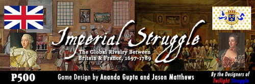 Imperial Struggle is a two-player game depicting the 18th-century rivalry between France and Britain. It begins in 1697, as the two realms wait warily for the King of Spain to name an heir, and ends in 1789, when a new order brought down the Bastille. The game is not merely about war: both France and Britain must build the foundations of colonial wealth, deal with the other nations of Europe, and compete for glory across the span of human endeavor.
