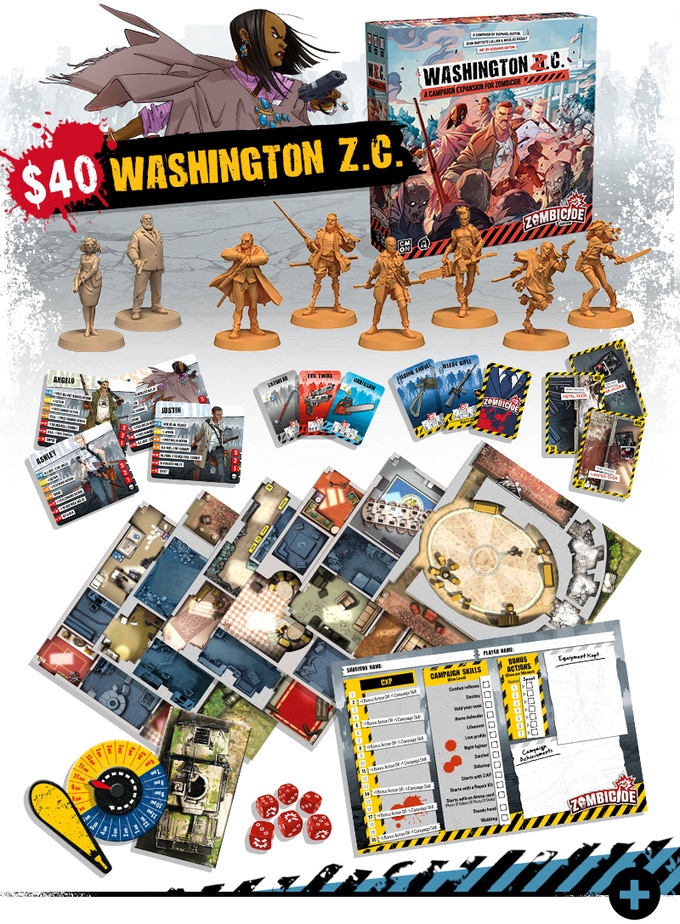 Zombicide is a collaborative game in which players take the role of a survivor – each with unique abilities – and harness both their skills and the power of teamwork against the hordes of unthinking undead! Zombies are predictable, stupid but deadly, controlled by simple rules and a deck of cards. Unfortunately for you, there are a LOT more zombies than you have bullets.