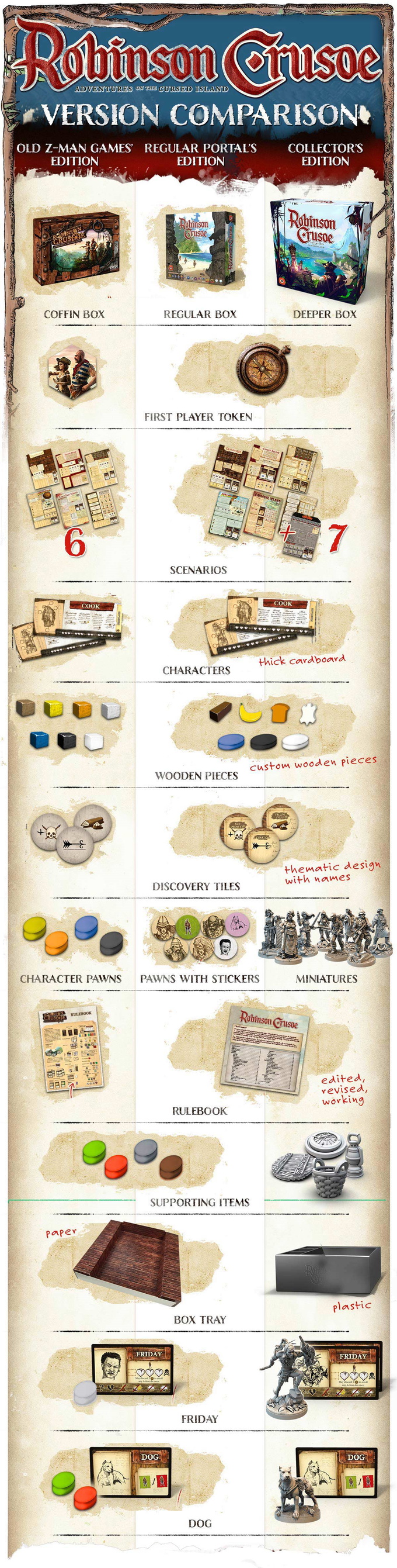 The Collector's Edition of Robinson Crusoe: Adventures on the Cursed Island that was launched on Gamefound contains exclusive content (including ones impact game play) that will not be found in the retail version of the Collector's edition.