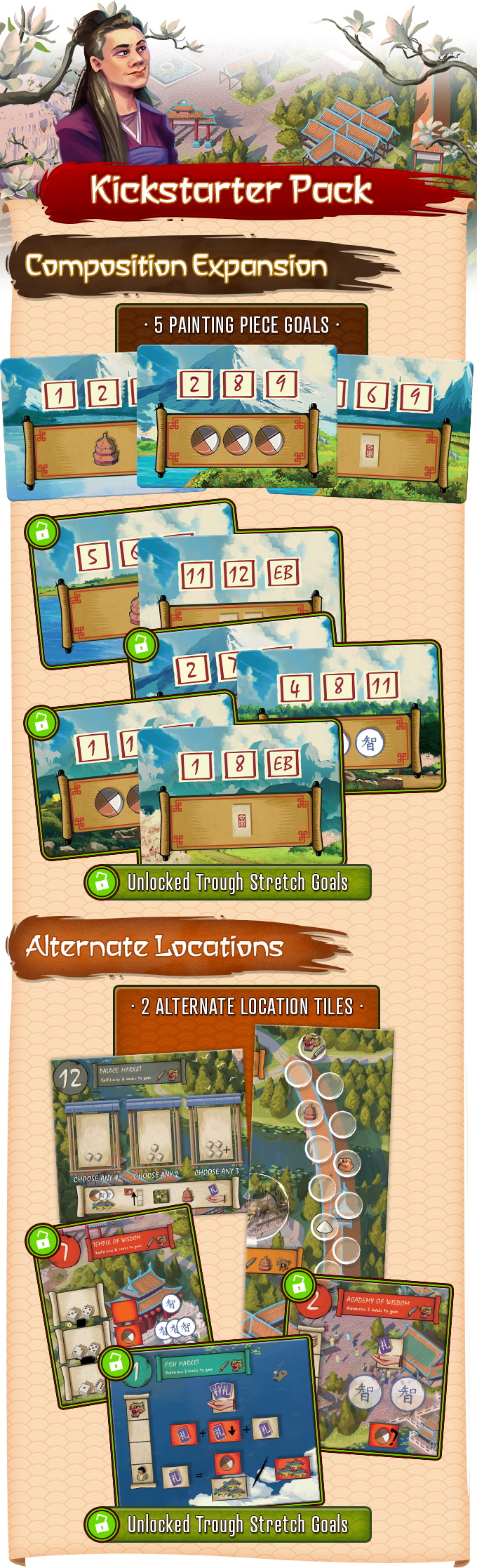 - Free Kickstarter Exclusive Pack (Composition and Alternate Locations mini-expansions)