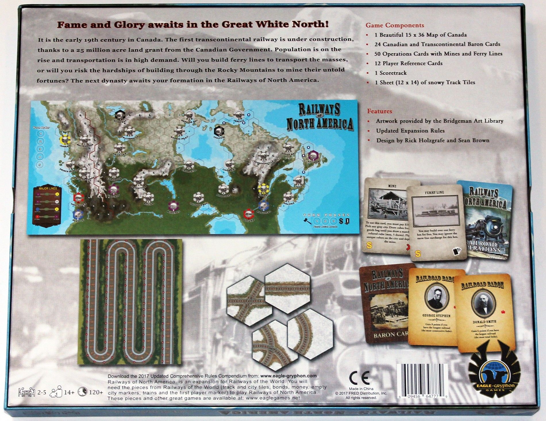 Railways of North America expands the basic game of Railways of the World (ROTW) to Canada and requires a copy of the base game to play it. Fans of the series will be happy to see new features and an advanced map designed specifically for this expansion.
