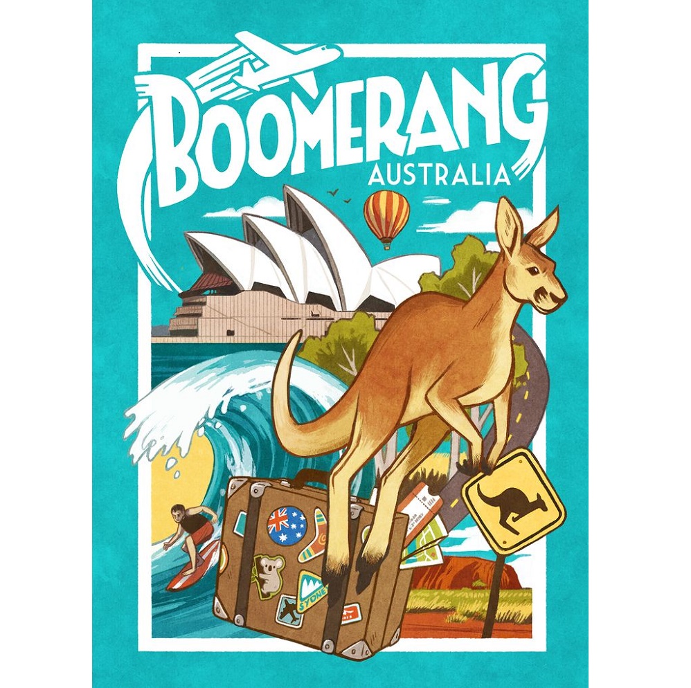 Boomerang: Australia features a unique blend of set collection and card drafting with the approachable feel of a roll-and-write game. Draft locations from across the Australian continent as you collect sets of activities and animal sightings to gain the most points.