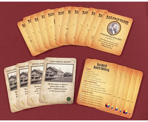 Railways of the World: "Golden Spike" Transcontinental Deck is a set of 22 cards created to play The Transcontinental edition (the combination of Eastern US map found in the base game and the expansion Western US) of Railways of the World.