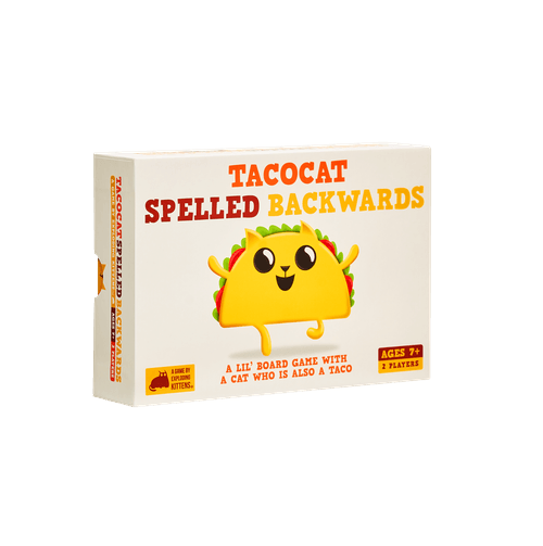 Tacocat Spelled Backwards is a fun balance of strategy, luck and instinct! With its portable open-and-play design, it's a perfect two player anytime, anywhere game; the box is the board, just open and play!