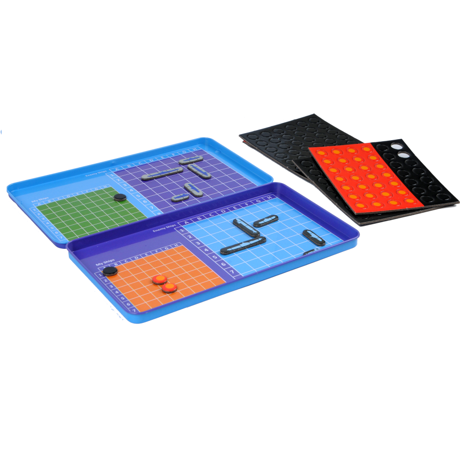 Each player deploys his ships (of lengths varying from 2 to 5 squares) secretly on a square grid. Then each player shoots at the other's grid by calling a location. The defender responds by "Hit!" or "Miss!". You try to deduce where the enemy ships are and sink them. First to do so wins.