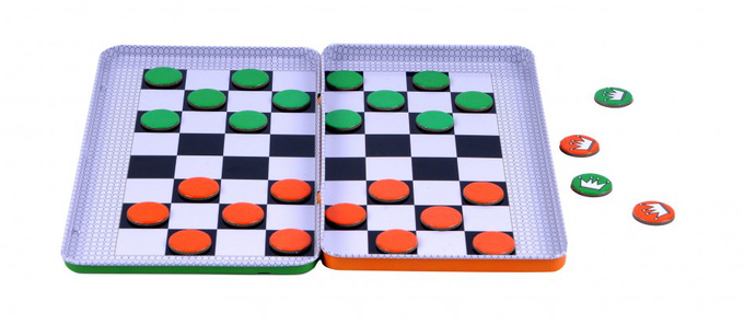 Compact and chique, a variety of classic board games designed in a slim tin case, printed both sides with magnetic pawns and pieces. Fun and affordable travel games, for all ages.