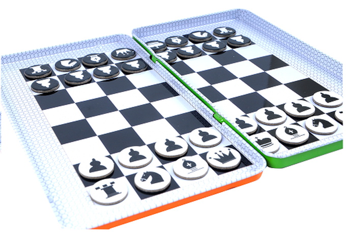 Compact and chique, a variety of classic board games designed in a slim tin case, printed both sides with magnetic pawns and pieces. Fun and affordable travel games, for all ages.