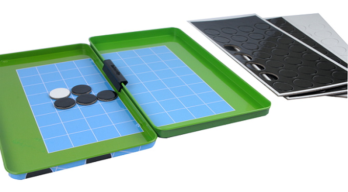 REVERSI is a strategy board game for two players, played on an 8×8 uncheckered board. It was invented in 1883. Othello, a variant with a change to the board's initial setup, was patented in 1971. Basics. There are sixty-four identical game pieces called disks (often spelled "discs"), which are light on one side and dark on the other.