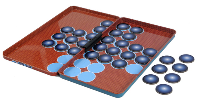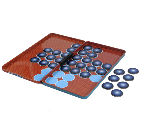 Compact and chique, a variety of classic board games designed in a slim tin case, printed both sides with magnetic pawns and pieces. Fun and affordable travel games, for all ages.