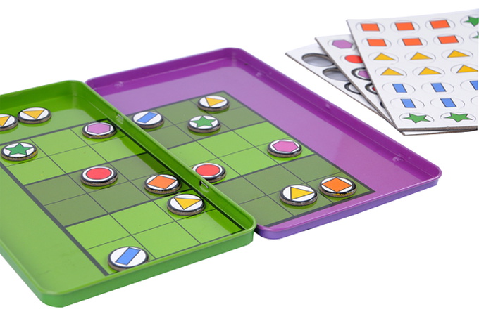 Compact and chique, a variety of classic board games designed in a slim tin case, printed both sides with magnetic pawns and pieces. Fun and affordable travel games, for all ages.