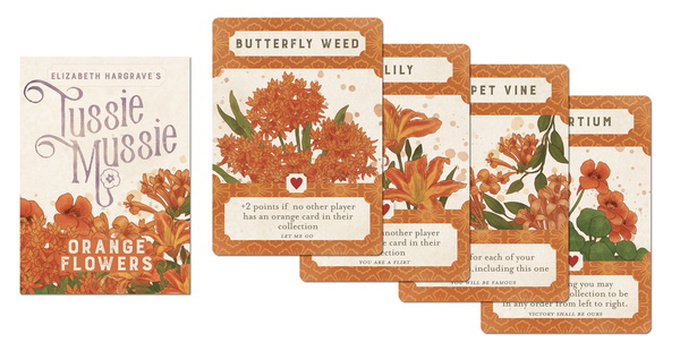If you’re comfortable with the harmonious blend of pinks and purples in the base game of Tussie Mussie, the Orange Flowers expansion is the perfect way to add a pop of color to an old favorite. Orange flowers push the player interaction with their diverse scoring: depending on which you find first, you may want to gather them all for yourself or spread them around the table. There’s also the Nasturtium, a potentially powerful (though situational) card that lets the player reorder their arrangement before scoring. Don’t let another player find out why its meaning is “victory shall be ours”!