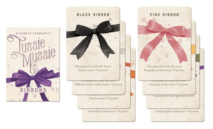 If you thought Greenery added something new, get ready for Ribbons! The Ribbons expansion adds 8 Ribbon cards featuring extra goals that players can score in addition to their arrangement. These goals are visible throughout the game and each game will have 1, 2, or 3 of these cards based on player count. Ribbons don’t add to or replace cards from the deck, so they can easily be played alongside the other expansions for maximum enjoyment.