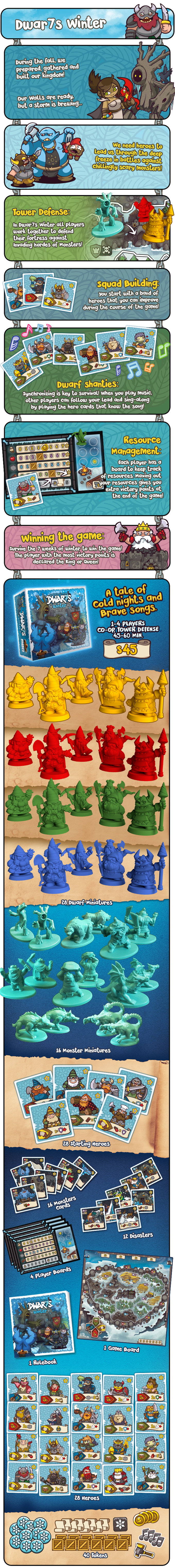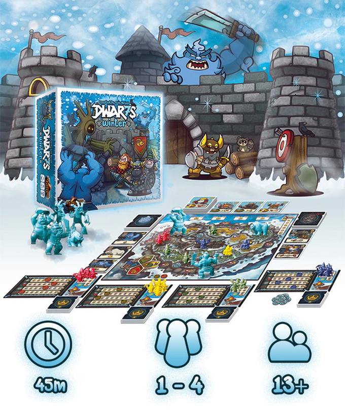 Dwar7s Winter is a hand-building, resource management game with tower defense elements in the gameplay. Each player wants to achieve more victory points, but the only way to survive the winter is to work together.